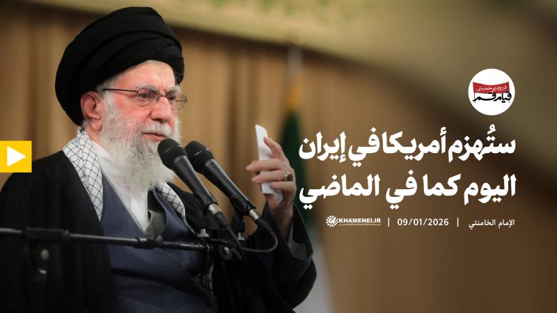 ينشر موقع KHAMENEI.IR الإعلامي مقطعًا مصوّرًا يتضمّن كلام الإمام الخامنئي بتاريخ 09/01/2026 الذي يؤكد فيه أن أمريكا ستُهزم في إيران كما هُزمت في الماضي، وأنها تقع مجددًا في نفس الحسابات الخاطئة والمغلوطة.
