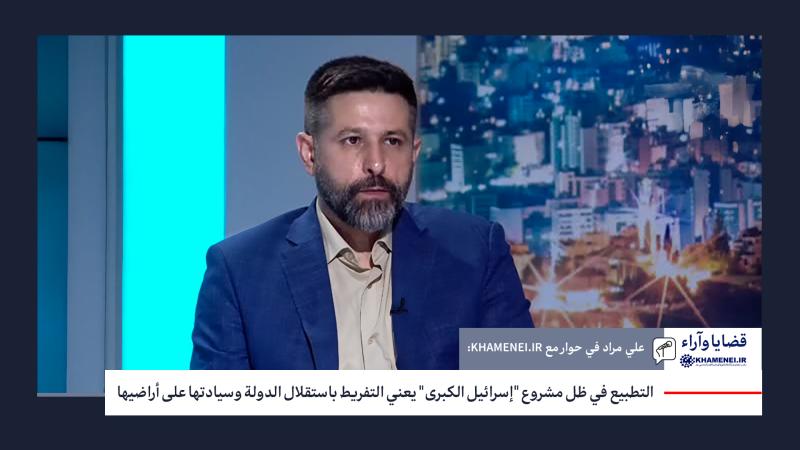 ينشر موقع KHAMENEI.IR الإعلامي نصّ الحوار الذي أجراه مع الكاتب والباحث السياسي علي مراد وتطرّق فيه إلى الحديث عن خطر قيام "إسرائيل الكبرى" والتهديدات التي تتربّص بدول المنطقة، وإن كانت سياسة تطبيع العلاقات مع الكيان الصهيوني ضمن نطاق اتفاقيات إبراهيم قادرة على وضع حدّ لطموحات الكيان التي لا تشبع.