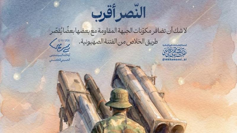 لا شك أن تضافر مكوّنات الجبهة المقاومة مع بعضها بعضًا يُقصّر طريق الخلاص من الفتنة الصهيونية. آية الله السيد مجتبى الخامنئي | 12/03/2026