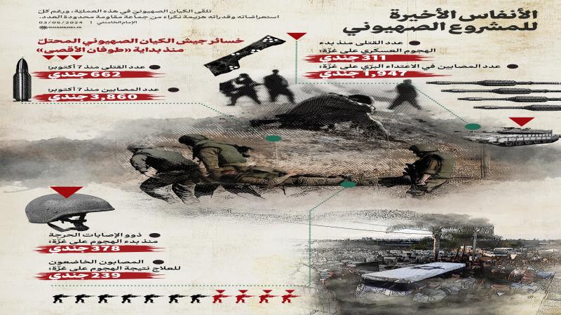 ينشر موقع KHAMENEI.IR الإعلامي إنفوغرافاً يعرض بالأرقام والإحصائيات خسائر جيش الكيان الصهيوني المحتلّ منذ بداية «طوفان الأقصى».