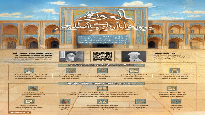 تطرّق الإمام الخامنئي في نداء إلى المؤتمر المنعقد بمناسبة «مئويّة إعادة تأسيس الحوزة العلميّة في قم»، إلى شرح العناصر والوظائف المتعدّدة للحوزة العلميّة، وشرح شروط تحقّق «الحوزة الرائدة والطليعيّة». يعرض موقع KHAMENEI.IR الإعلامي في هذه المناسبة ضمن هذا الإنفوغراف، المحاور الأساسيّة والتوصيات التي قدّمها قائد الثورة الإسلاميّة في هذا النداء.